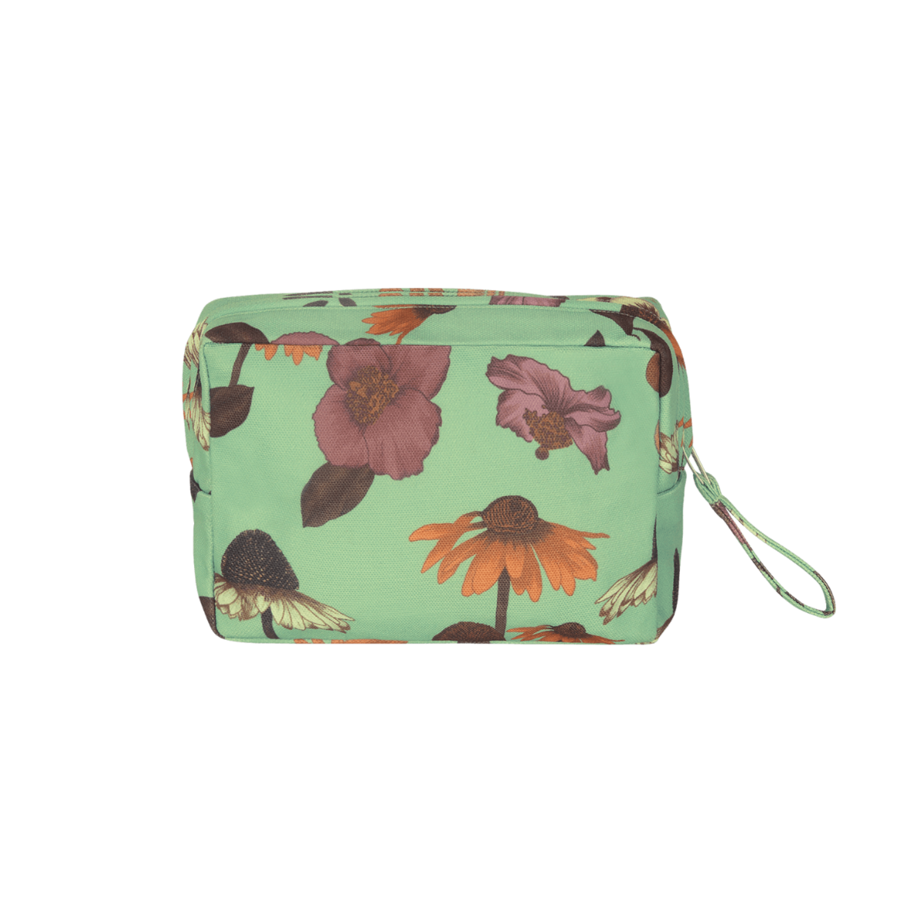 Made from 100% recycled PET (plastic bottles) its water resistant, fade proof and super durable. Comes with a lining inside the zip bag and would also be great for a make up bag.