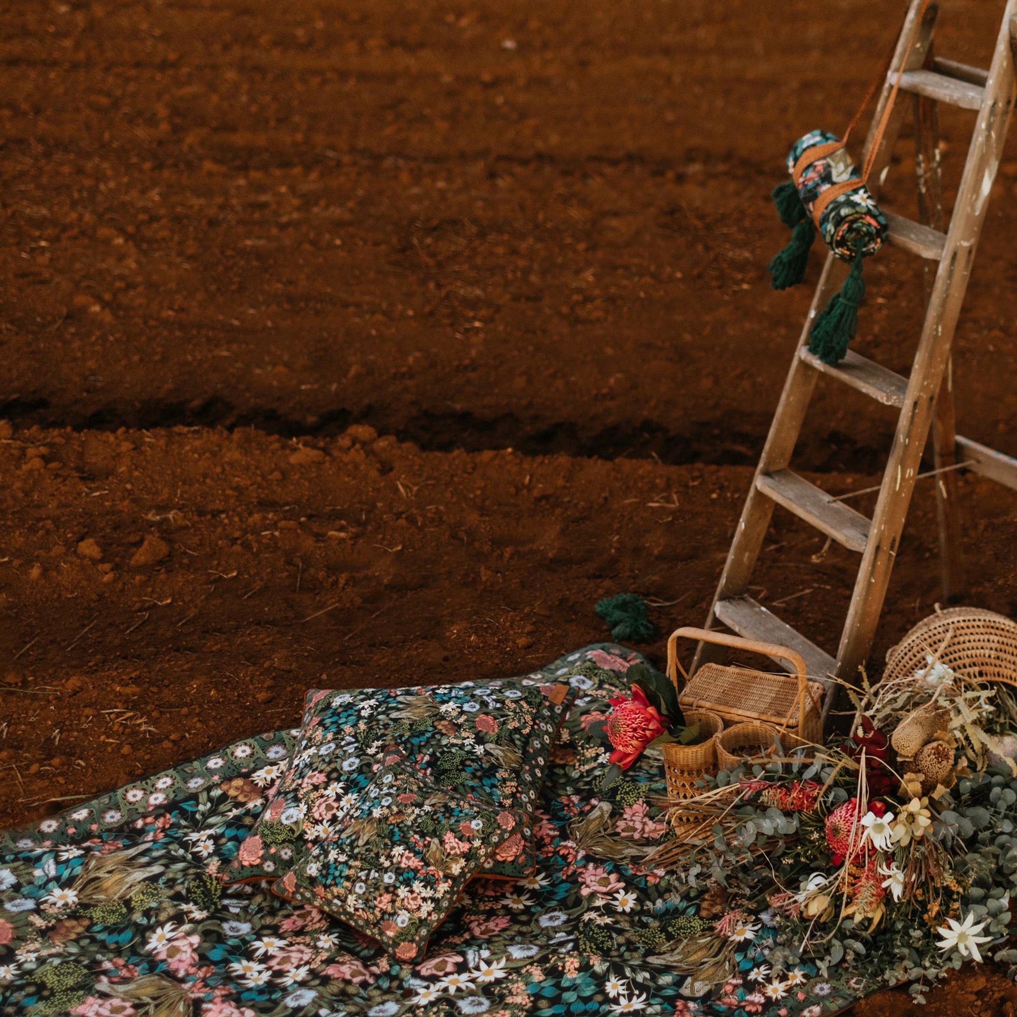 Our best selling Native Wildflower print is hand illustrated by our founder Sharnee Thorpe. Printed on a durable cotton canvas with a protective water resistant base, so you can style your picnic set up any way you like!