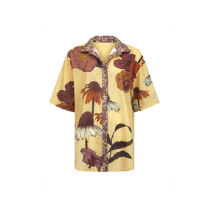 Our Glades Chamomile over swim Shirt is made from an organic cotton voile, a semi sheer fabric with all over large floral print featuring a contrast placket in the Petite Butter ditsy print, finished with coconut buttons up the front. It's a One size over swim shirt, that fits a size 6-8 to a size 16 with a different look on each size.