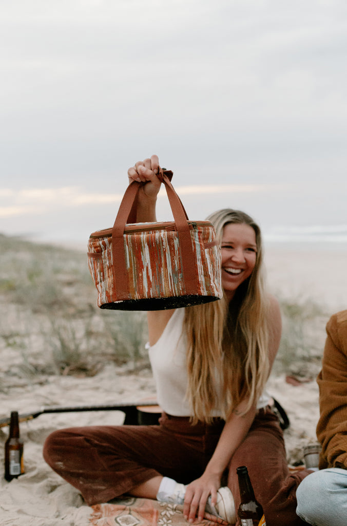 Our mini cooler bags are insulated, durable and leak proof. Made from a quality woven cotton blend with plenty of storage and a removable interior lining for easy clean and everyday use. It will keep your drinks and snacks chilled with its padded cooling insulation. A trusty companion for your everyday adventures.