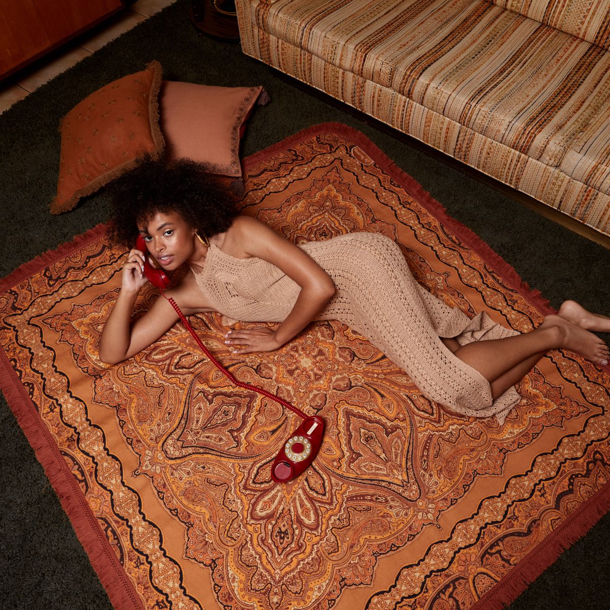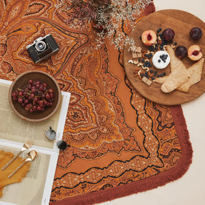 The Topanga Picnic Rug is a luscious remix of the iconic 60s paisley print and an earthy 70s colour palette, inspired by the hippy mecca of bygone eras, Topanga Canyon.