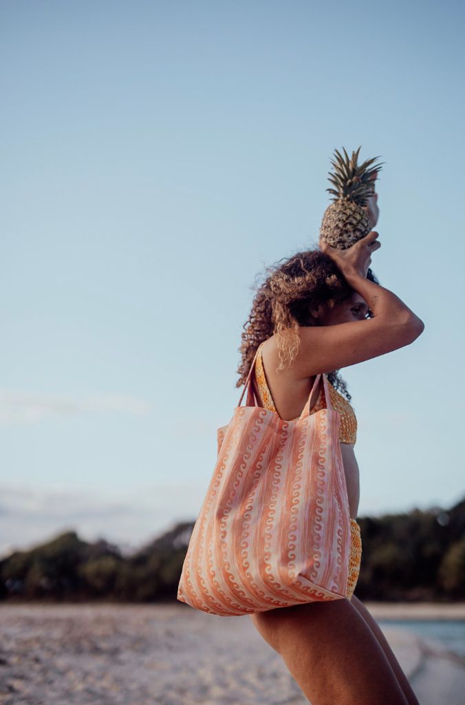 This large cotton canvas tote bag to fit all your picnic essentials, it’s made with our original Wandering Folk Sol printed fabric with internal double pocket and a woven logo tag.