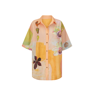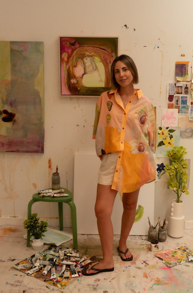 Our Pastel Sea shirt is part of our Artist Series, showcasing Annie Everingham’s hand-painted artwork. Painterly pastels and expressive brushstrokes capture the quiet magic of the seaside, shells, fruits, and tropical orchid motifs brought to life on lightweight organic cotton.