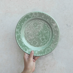 Celebrate the unique charm of artisanal craftsmanship with these beautifully handmade mugs, plates, and bowls. Each piece features a delicately hand-applied floral stencil pattern, carefully coated in a smooth porcelain glaze. A hand-painted edge adds a striking colour contrast, each item has its own distinctive character to remind you they are made by hand and humans are not perfect. Fired at a high temperature for added durability, these pieces are designed to withstand hot liquids and are both dishwasher and oven safe, ensuring they combine beauty with everyday functionality.
