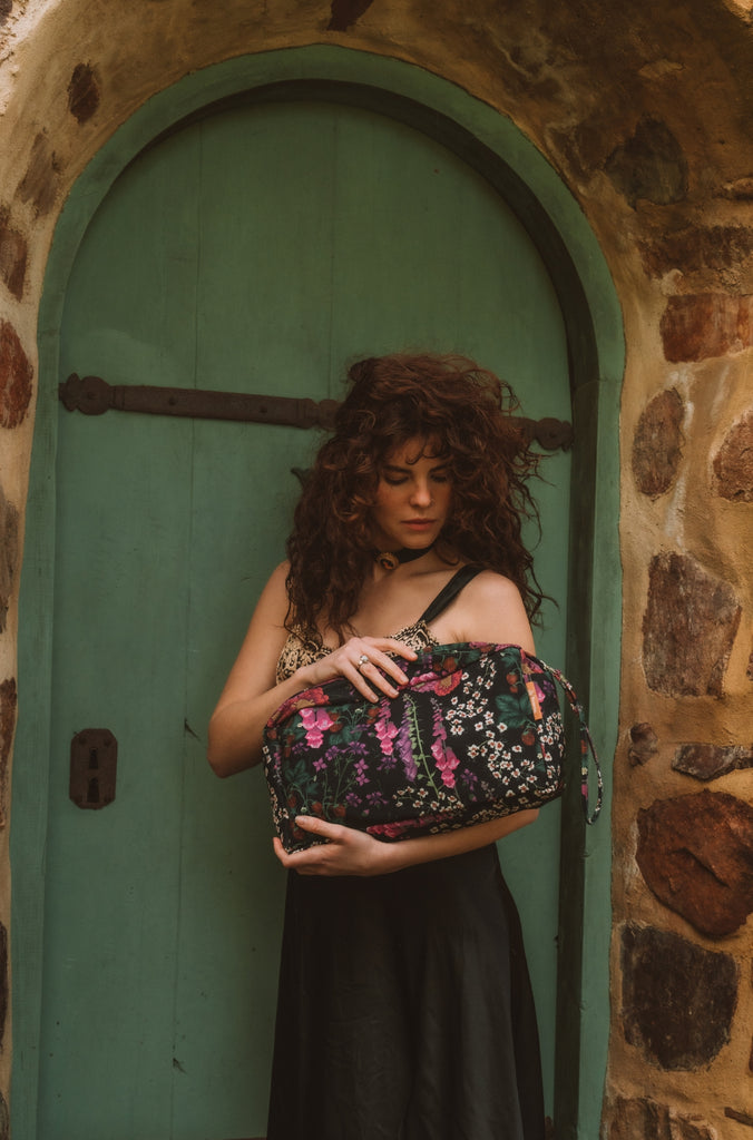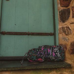Inspired by the whimsical charm of English blooms, the Flourish Clover zip bag features Hand-drawn florals bursting with life.