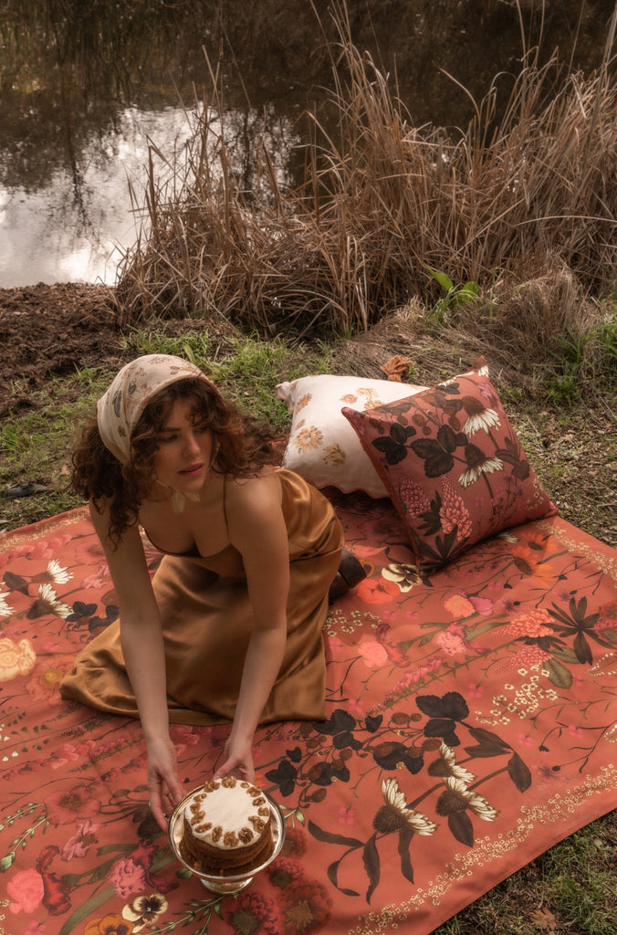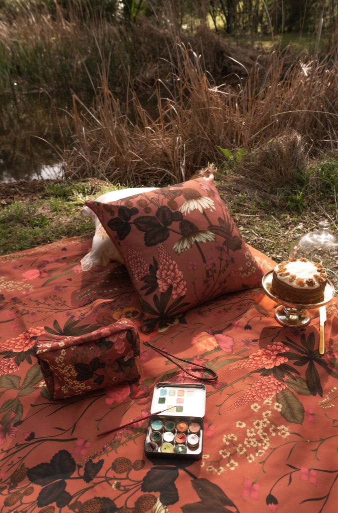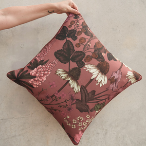 Inspired by the soft romance of English garden blooms, the Flourish Sienna Cushion is thoughtfully illustrated with expressive brushstrokes and delicate hand-drawn line work.