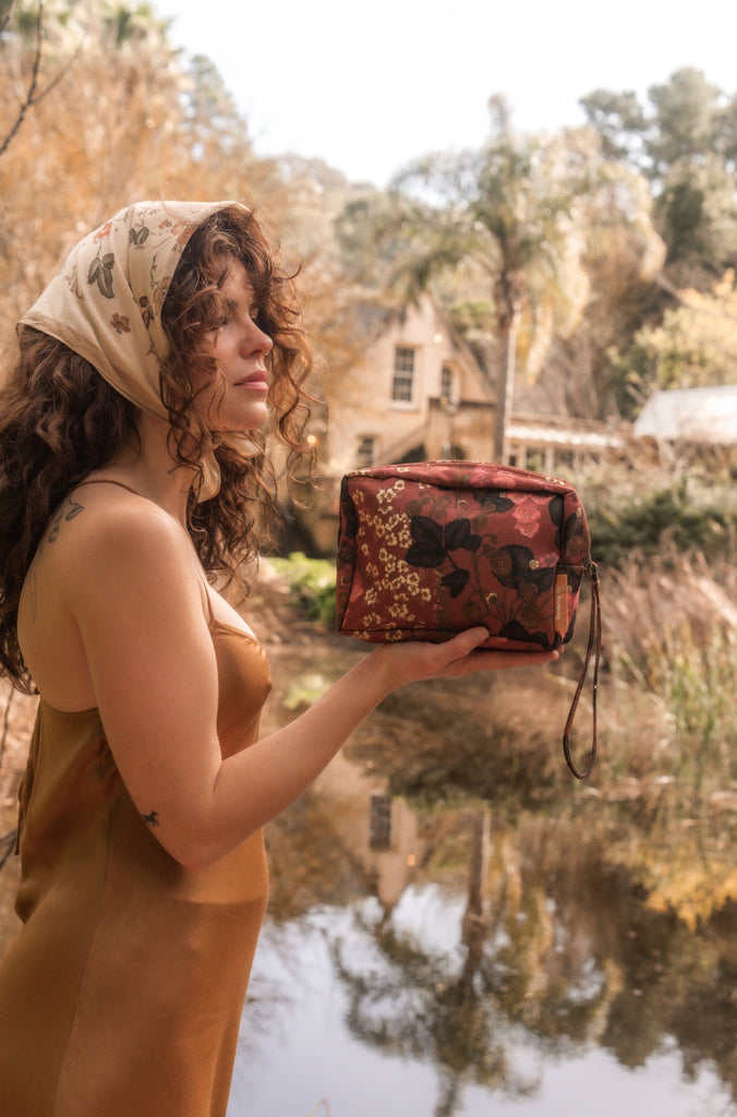 Inspired by the quiet beauty of English garden blooms, the Flourish Sienna zip bag! Every line and brushstroke captures nature’s gentle elegance with hand drawn blooms.