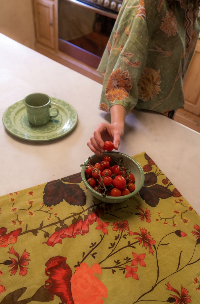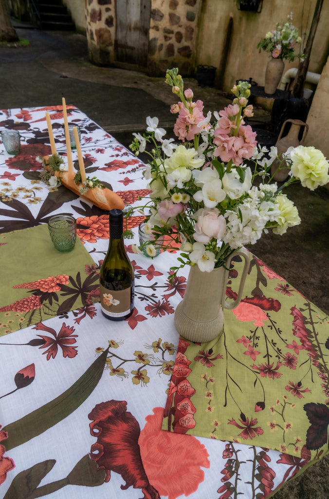 Flourish Tea Towel in cotton-linen featuring a hand-drawn floral design inspired by the quiet beauty of English gardens in bloom.