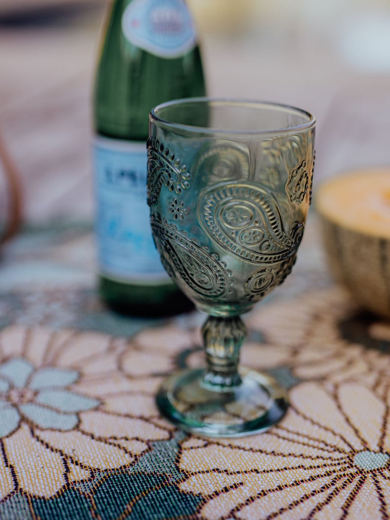 Our stunning Goblet glass set of two featured in this fabulous new Peppermint colour way are made from a durable, thick glass that features a beautiful embossed design.