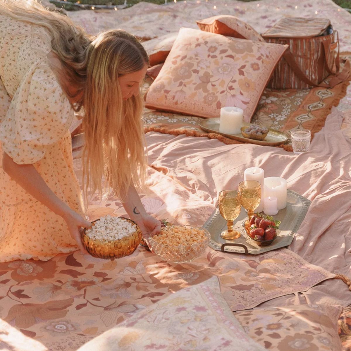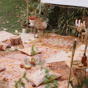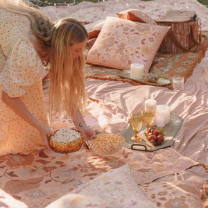 The durable cotton canvas surface is adorned with hand illustrated prints by our founder Sharnee Thorpe. Our cushions each feature a protective water resistant base, so you can style your picnic set up any way you like! We pride ourselves on high standards of craftsmanship and the quality materials we use so our products can be cherished for a lifetime. Our unique cushions are designed to pair back perfectly with our picnic rugs.