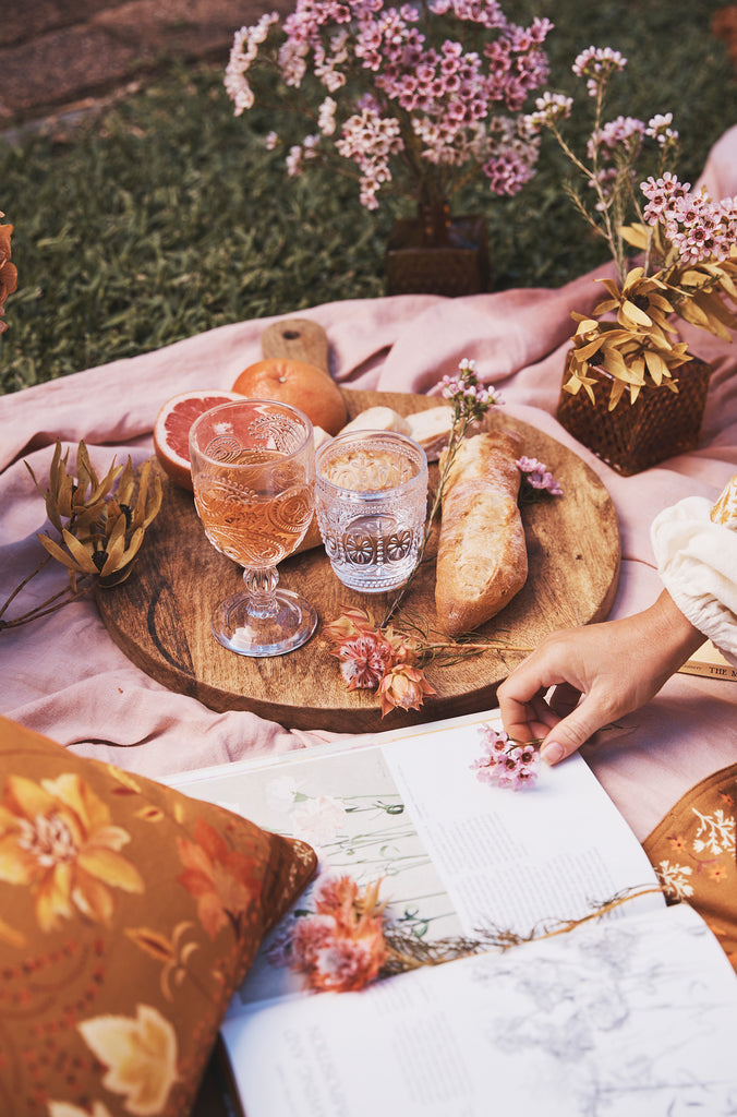 The durable cotton canvas surface is adorned with hand illustrated prints by our founder Sharnee Thorpe. Our cushions each feature a protective water resistant base, so you can style your picnic set up any way you like!