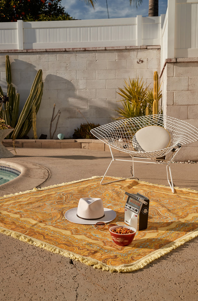 The Topanga Picnic Rug is a luscious remix of the iconic 60s paisley print and an earthy 70s colour palette, inspired by the hippy mecca of bygone eras, Topanga Canyon.