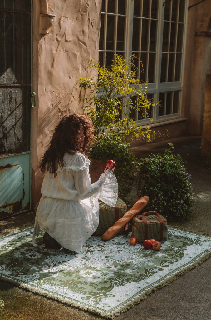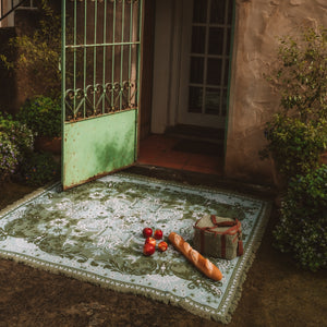 Our Ornate Floral Throw is a new dreamy green Fern colour to our Ornate ginger and Ornate Rosè, long time favourites of our Wandering Folk community. It features a vintage inspired woven, floral design with coloured cotton fringing.
