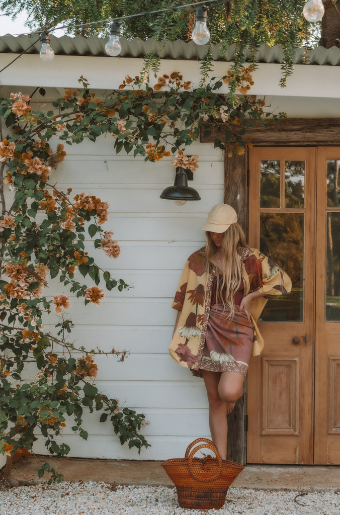 Our Glades Chamomile over swim Shirt is made from an organic cotton voile, a semi sheer fabric with all over large floral print featuring a contrast placket in the Petite Butter ditsy print, finished with coconut buttons up the front. It's a One size over swim shirt, that fits a size 6-8 to a size 16 with a different look on each size.
