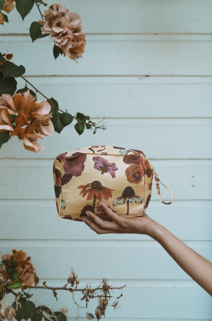 This handy and versatile zip bag makes storing your sunscreen easy for a day at the beach. Featuring our hand-drawn floral print and a large loop on zip end to make for easy caring.