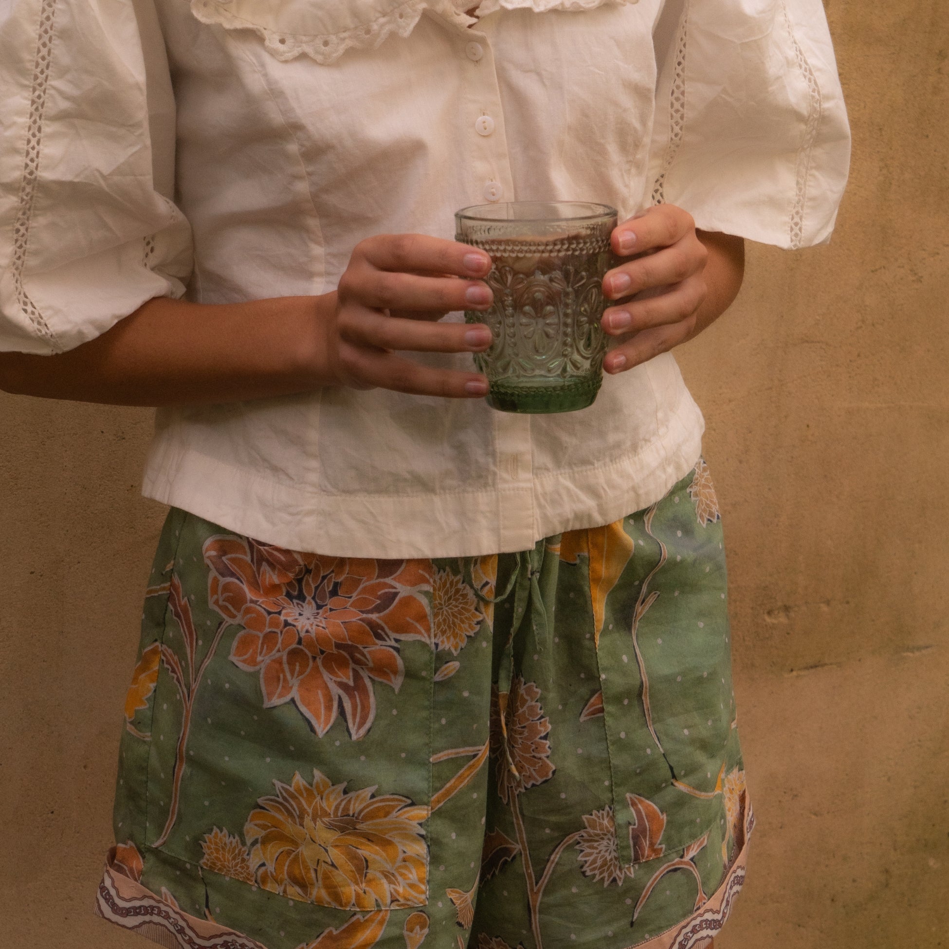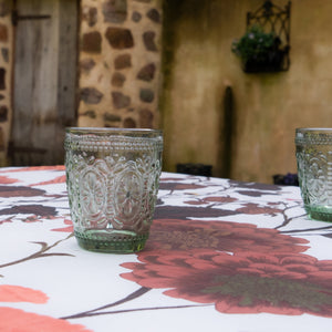 Our stunning Tumbler glass set of four featured in this fabulous new Peppermint colour way are made from a durable, thick glass that features a beautiful embossed design. Decorative and functional, they add elegance to any soiree!
